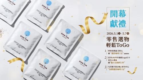 ▸ 單筆滿 𝟱𝟬𝟬 元,贈濾掛咖啡𝟭包 (風味隨機搭贈)
